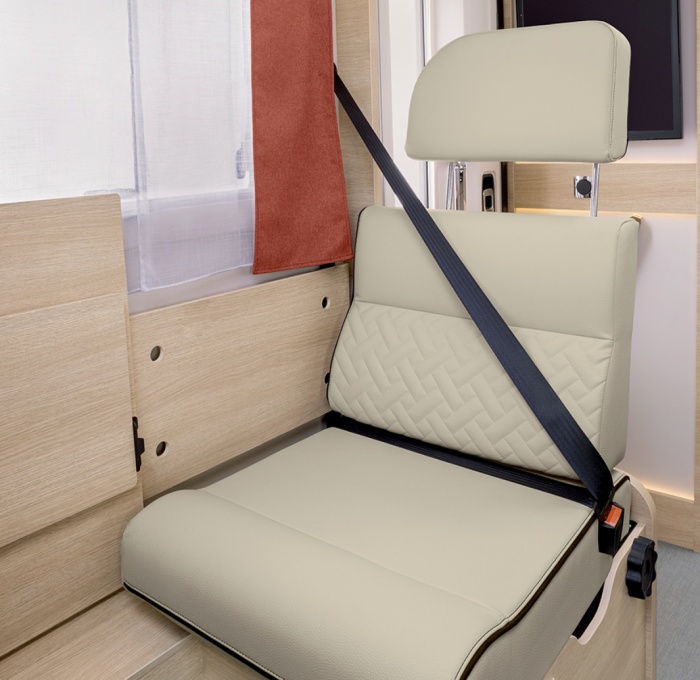 Côté déco, choisissez l’ambiance qui correspond à votre style, LUCEO ou NACARAT, et votre sellerie de série entre PALMA et NOUMEA*. Les modèles 666F et 696F de la Série anniversaire 65 ans disposent, eux, d’une sellerie brodée 65 ans (PALMA et NOUMEA).