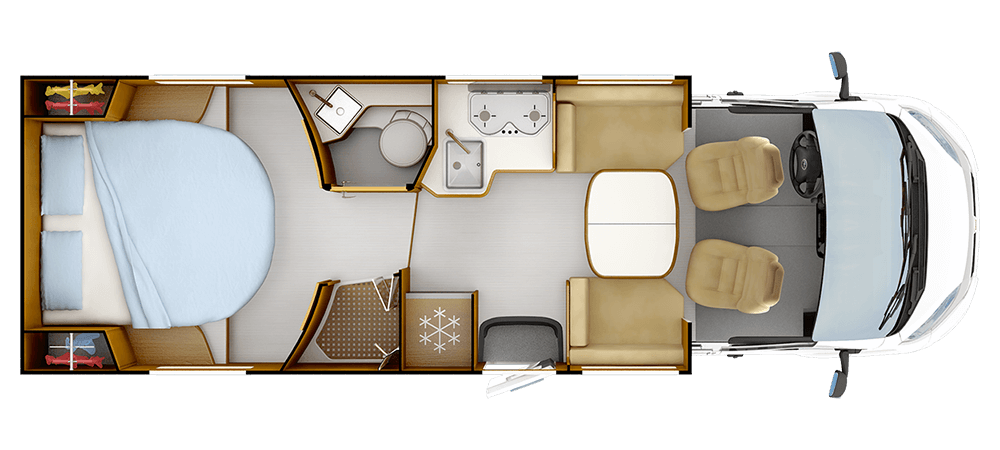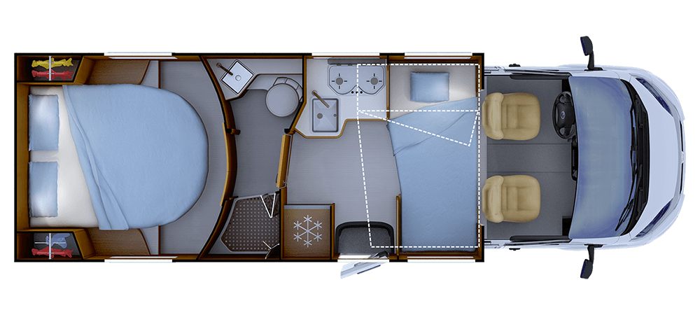 * 2+2 Avec option lit plafond **Places ceintures, pour nombre places carte grise voir guide technique. ***Truma Combi 4 CP PLUS